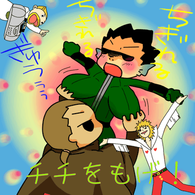 あるぇー 腕が切れて 急所に当たっていっないー?! 2人して何やっているんですか。 自分がやらなくても相手が仕留めるだろうっていう甘い考え 現にマリアが今大変なことになっちゃってますし! ねっ!! 見て下さい、 (以下 音読禁止。) 瞬時に腕を縛りあげられた。 !! ミスズ先生、 これもまた、なかなか普通絵として見られるものではないので でも でも これはさすがに つい、私も釣られて下手な小説を書いてしまいそうでした。 危ない(笑) アジアンやカタリが性転換してて本当に良かったと思いました。 こんな光景 ミスズ先生的性転換の真の理由はここにありましたか~。