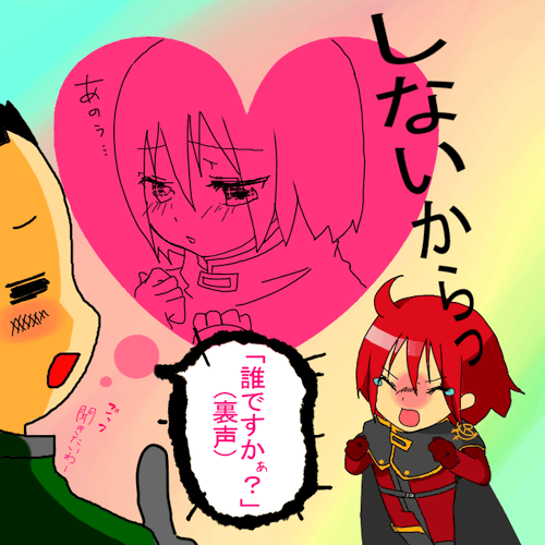 図書館委員なのですね。 顔が見えなくてもトマトクンと話せて心底嬉しそうな表情が目に浮かびます。 ●アジアン&荊王 飛ばす ●モリー セクスィー! 女体化カタリの胸も大きかったですが アジアンでも荊王でもなく ●ベアトリーチェ 学校でモリーに千人斬りとかされたらたまんないですから ●飛燕 チンピラ扱い∑ ●ユリカ 呆れながらも満更でもない様子のユリカ。 あんまりしつこくナンパされると ホウキ持たせたらヤバいですよ! ●カタリ クラスの人気者。 彼こそ飛燕と一緒にナンパしに行った方がいいんじゃ…。 ●マリア 転校生、自主私服登校。 鉄壁のガードで生足は見せてくれません。 マリアとカタリはどこを見ているのか、 ●アジアン なんで白ラン?! その服は カタリと制服が違うってことは彼もまた他校の生徒なんでしょうか。 アウトローサロン、 日本語で ならず者の集り。 WOW! 英語って ●荊王 彼だけ設定が1行で終わっていていますね。 荊王的にはちょっと不満かもしれません。 その怒りは木にぶつけてみてください。 白い人が落ちてきますから。 2009.05.07 Thu 23:30:14 新マリアが描き隊2009.05.06 Wed 23:44:34 感想54号「なんやかんやで4話目だ。」
