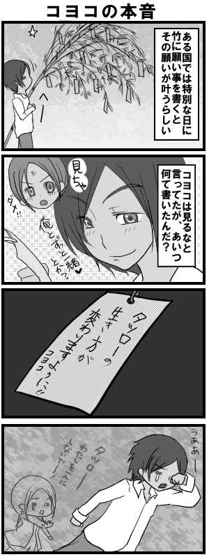 あいまり「薔薇マリ」についてただ自由気ままにかくブログ。更新速度は気分次第。ネタばれ放題。PAGE | 57 58 59 60 61 62 63 64 65 66 67 | ADMIN | WRITE 2008.07.08 Tue 18:15:54 バトンお休みの日2008.07.07 Mon 01:14:03 七夕2008.07.06 Sun 00:23:28 アジマリで学パロバトン強奪ナイトメアさんから強奪してきました 1. 朝一番、マリアにラブコールが!!!!!もちろんお相手はアジアンです。 2. 登校時。アジアン「おはようマリア!昨夜はキミを思うほど眠れなくなってしまって…」 3. 授業中のアジアンの脳内はどんなことで溢れかえっているのでしょうか。 4. 一方マリアは? 5. お昼御飯タイムです。アジアンはもちろんマリアの席へ。2人のお弁当の中身は? 6. 部活タイム。帰宅部のマリアにサッカーボールが!!!!!そのピンチに??!!! 7. やっとこさの下校時。 8. 無理やり家まで送られたマリア。家へ入る際に…アジアンのとった行動は? 9. うらばら(薔薇マリ学パロ)について自由に語ってみましょう! 10. お疲れ様でした!アジマリ好きさんに自由に回してみましょうwww |